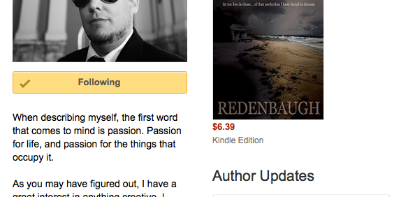 Feb242015WritingI have created my author central page with bio, books, events, news feed, etc… on Amazon. Check it out! Category: WritingBy seanredenbaughFebruary 24, 20151 Comment Author: seanredenbaugh Post navigationPreviousPrevious post:Book Signing Scheduled for March 7th!NextNext post:I have started a second book.Related postsBlackmill ProgressDecember 15, 2017And so it begins…December 9, 2017Hot Off The PressJuly 20, 2017Evansville Book Signing Was a Success!April 25, 2017Book now for sale here!March 22, 2017First CaseMarch 20, 2017
